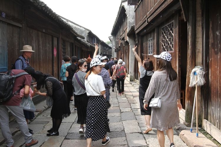 在南潯古鎮一逛就是一下午,景點出來已是傍晚時分,帶著一絲疲倦,大家立刻趕往期待已久的第二站——西塘,去感受西塘夜幕下的酒吧文化。